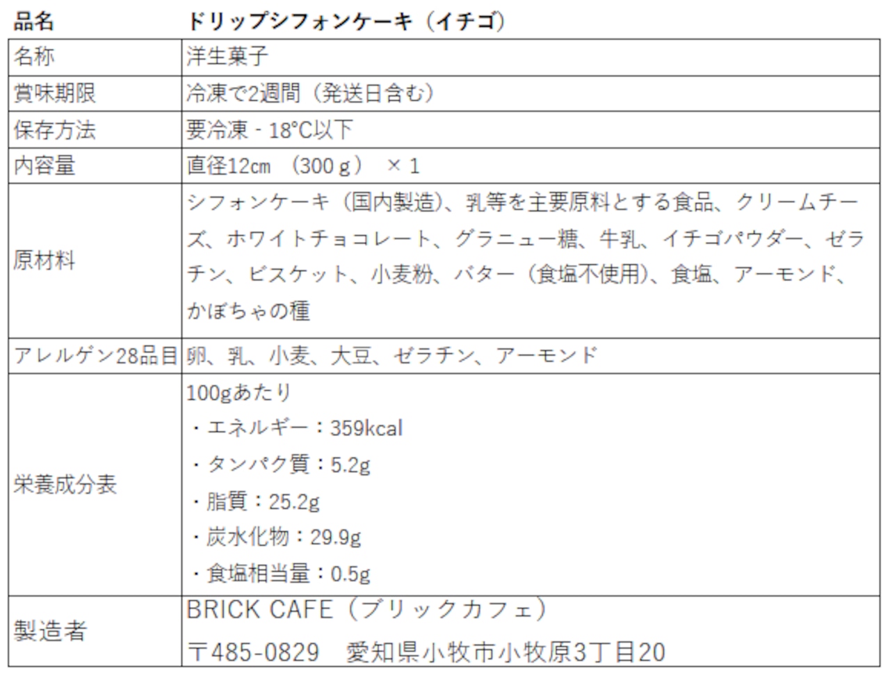 ブリックオリジナルドリップシフォンケーキ12㎝